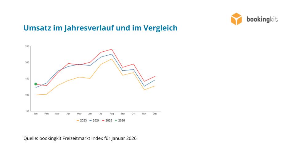 Der im Januar 2026 verarbeitete Umsatz liegt über den Vergleichswerten der drei Vorjahre. Damit setzt sich der strukturelle Aufwärtstrend fort – selbst in einem Monat, der traditionell als Nebensaison gilt. Die Zahlen belegen, dass Anbieter auch außerhalb der Hochsaison stabile und wachsende Erlöse erzielen können. Besonders Betriebe mit margenstarken Angeboten und gezieltem Yield-Management sichern sich frühzeitig eine starke Marktposition für das laufende Jahr.