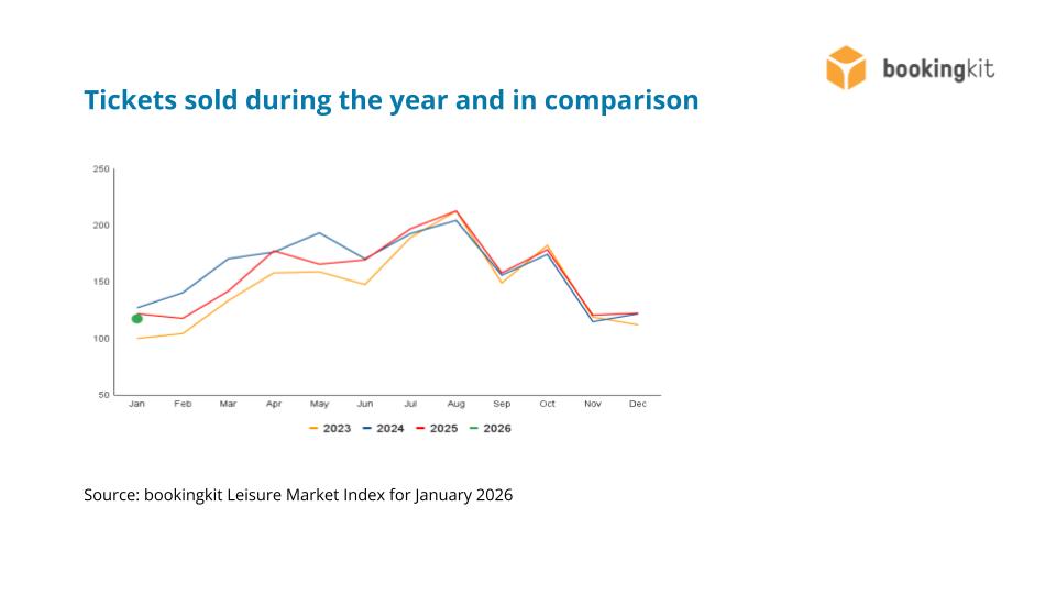 Ticket volume in January declined compared to the same period in 2024 and 2025. However, this development reflects a structural shift rather than weakening demand. Operators are increasingly achieving higher financial returns from a smaller but more valuable customer base. In this environment, seamless booking experiences and optimized conversion paths become critical. The focus is no longer solely on driving volume, but on converting interest into confirmed, high-quality bookings as efficiently as possible.